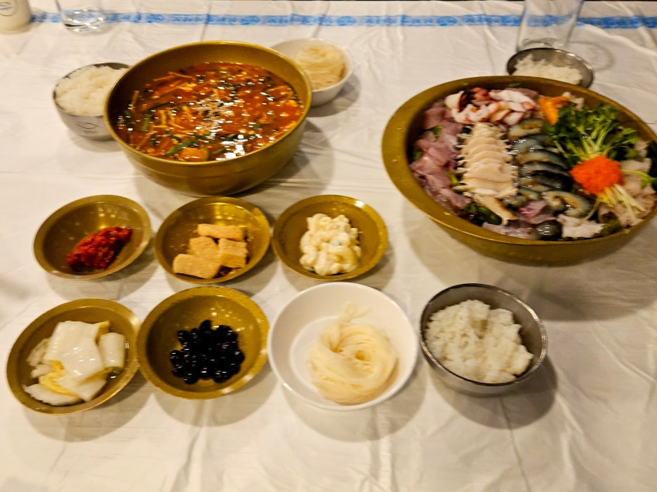 이번에 우리는 해전물회 2인분, 섭국, 오징어순대를 주문했다. 늘 2명이서 방문했을 때에는 해전 물회만 주문할 수 있었는데, 3명이서 방문하니 이렇게 다양하게 주문할 수 있어서 좋았다.