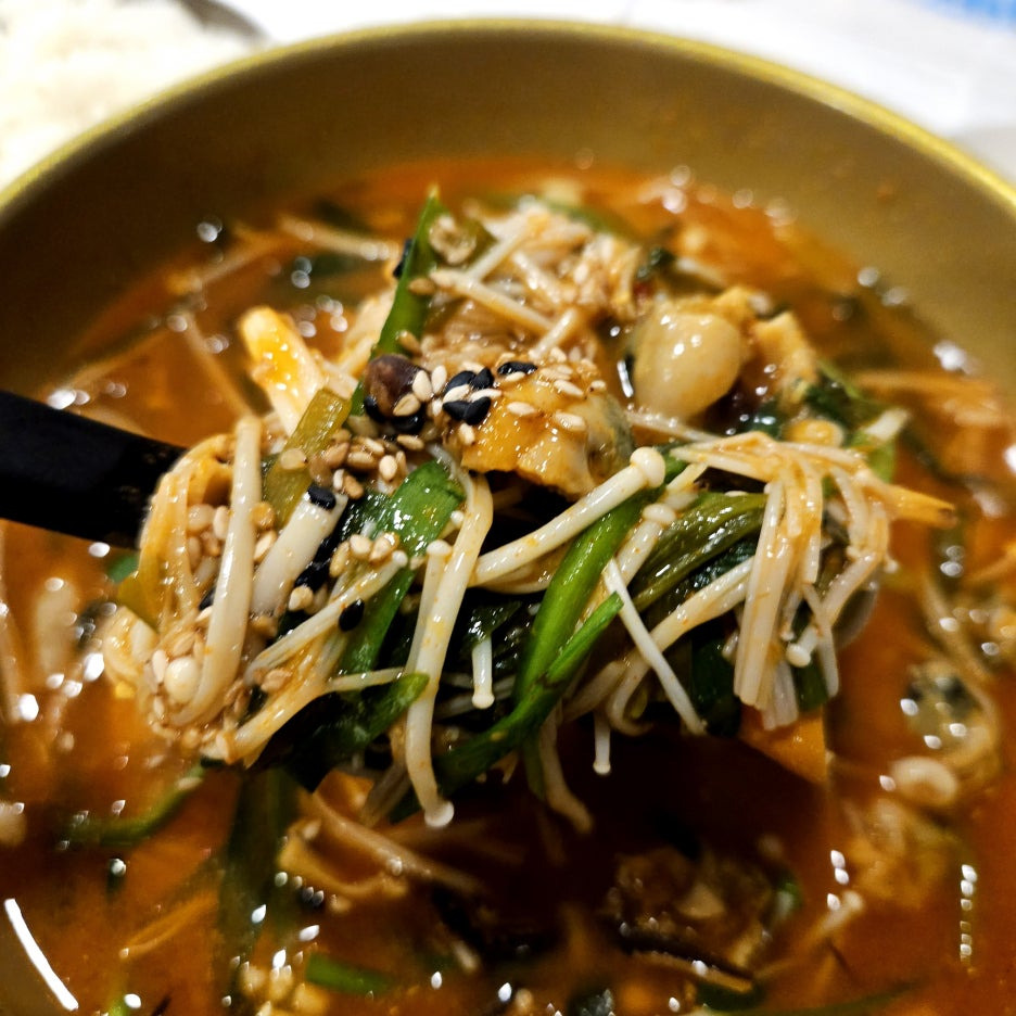 다들 잘 아시겠지만, 섭은 홍합 중 씨알이 좀 많이 큰 녀석을 강원도 쪽에서 일컫는 말이다. 자연산 홍합을 섭이라고 한다는 말도 있긴 하더라. 섭국은 결국 씨알이 굵은 홍합으로 만든 국. 매운탕 비슷하다. 홍합살과 부추, 버섯, 달걀을 넣고 숙성 장으로 맛을 낸 칼칼한 국물요리.