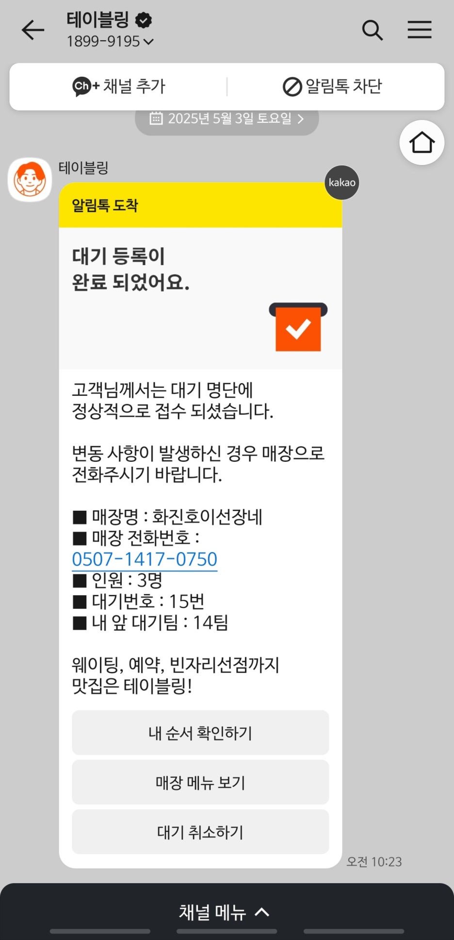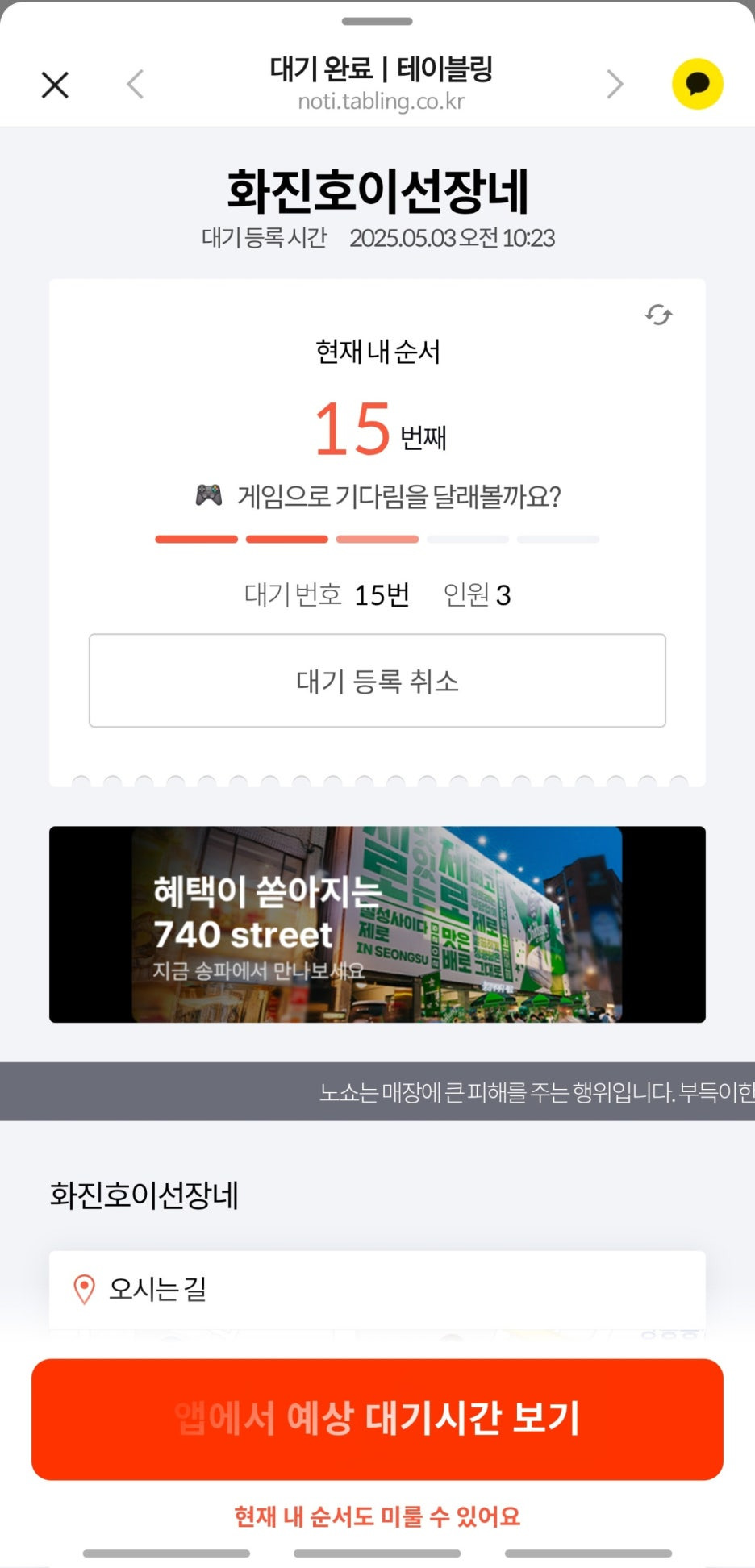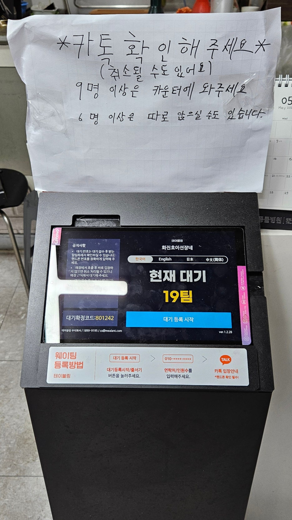 이곳은 테이블링으로 대기가 가능하지만, 반드시 직접 방문해서 대기를 입력해야 하는 시스템이다. 즉 원격 대기는 불가능하다는 것. 매장 안의 기계로 대기를 입력한다. 우리는 대기 15번. 이미 첫 타임에 들어가기는 늦었다. 이곳은 테이블이 총 12개이기 때문.