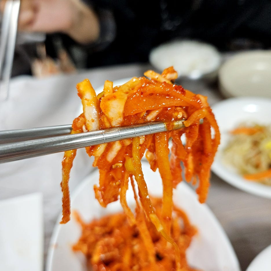 국물은 아주 말고 깔끔하다. 하지만, 감칠맛이 좀 부족했다. 부산에서 먹던 대구탕보다는 조금 덜 한 맛.
