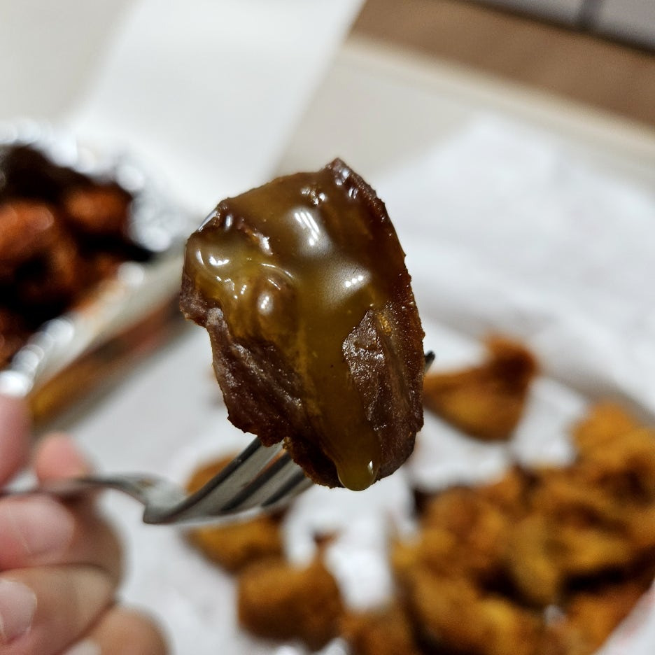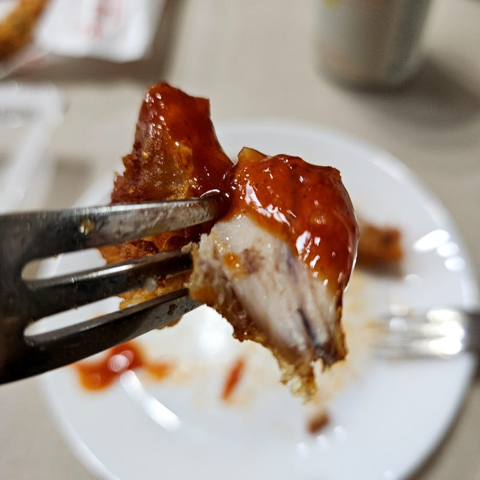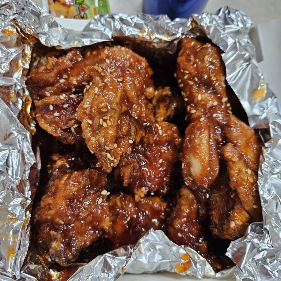 바삭함은 다소 누그러들었으나, 오히려 다소 식은 후라이드 보다 훨씬 좋다. 속초의 닭강정 같은 맛으로 쫄깃한 다리 살과 양념은 훌륭하다.