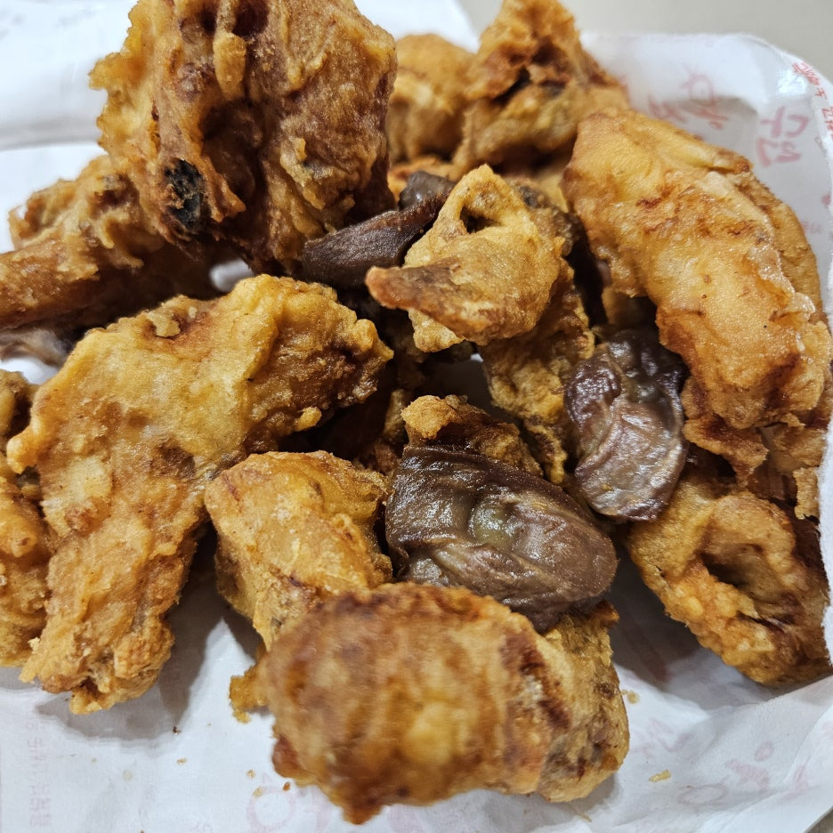 아무래도 식으면 맛이 떨어지니, 집으로 오는 달리는 차 안에서 서비스로 포함된 닭똥집을 몇 개 집어먹고, 마지막으로 순살 쪽으로 한 조각 먹었다. 사실 닭똥집은 많이 먹었지.