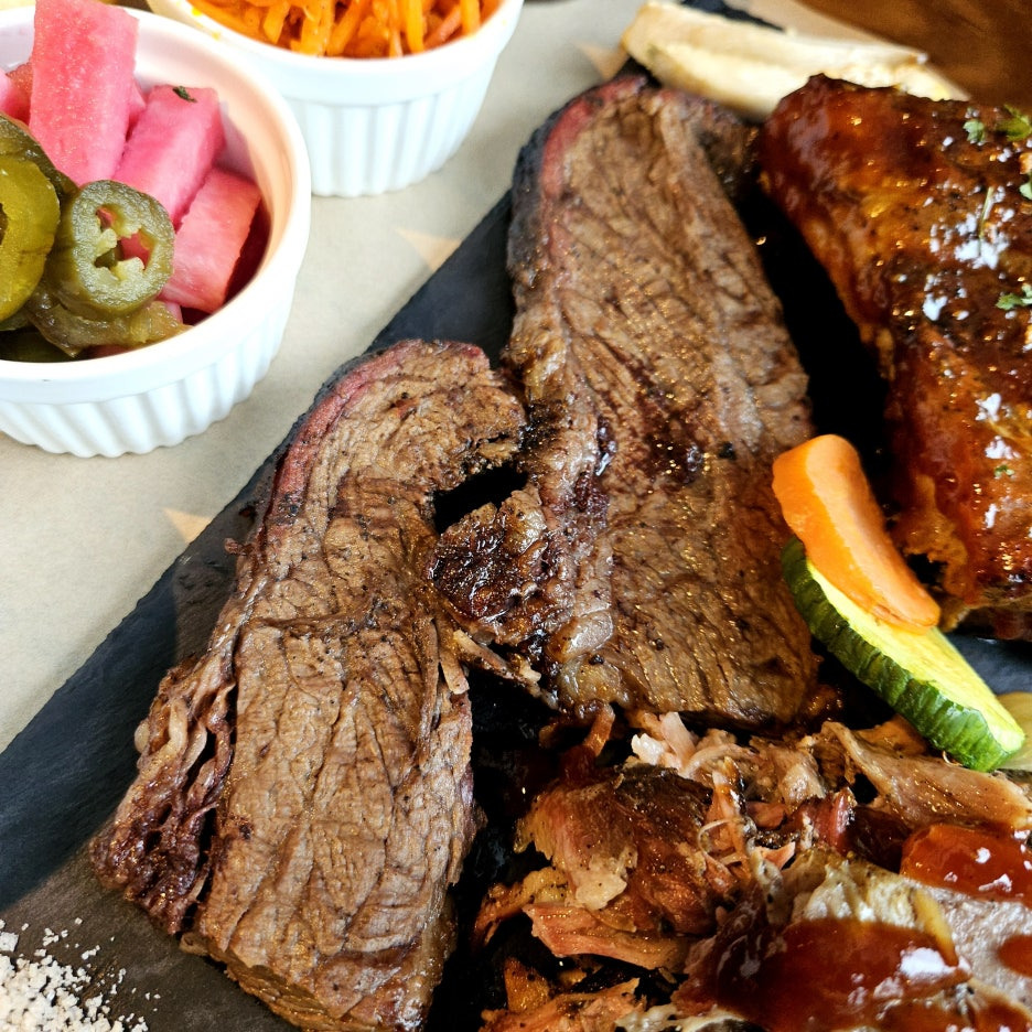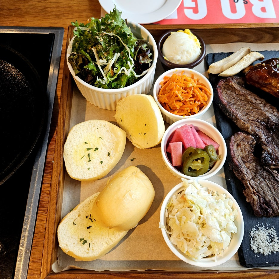 일단, 고기들의 뗏깔이 아주 훌륭. 그런데, 가장 기대했던 브리스킷은 왠지 조금 말라 보이는 비주얼이라 걱정이 되긴 한다.