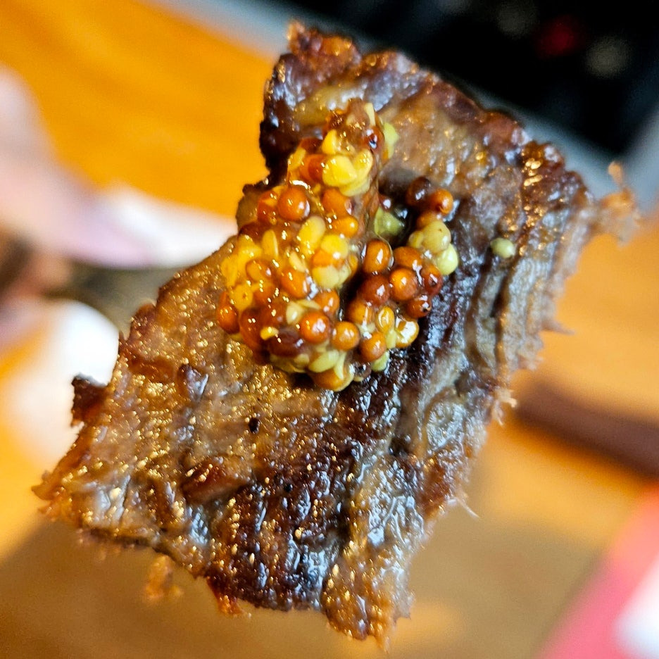브리스킷은 홀그레인 머스터드소스와 함께 하니, 아주 좋아졌다. 홀그레인 머스터드가 약간의 수분기를 제공하여 훨씬 부드럽게 씹히며 고기 자체의 맛도 급상승.