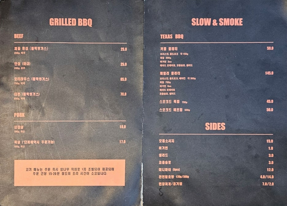 유튜브 어디선가 본 곳이다. 훌륭한 텍사스 바베큐를 가성비 좋게 먹을 수 있다는 곳. 하지만, 그 영상은 왜인지 없어졌더라.