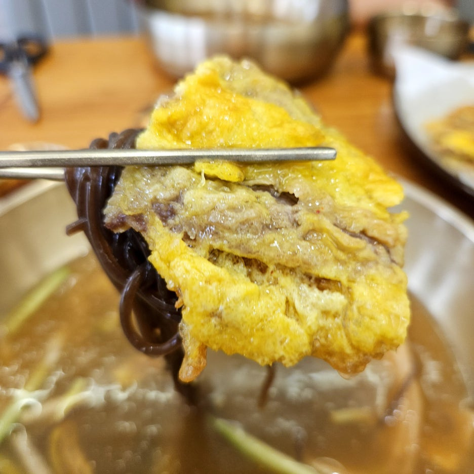 두 번째 고명은 진주냉면의 아이덴티티인 육전. 식었음에도 맛있는 요상한 녀석.