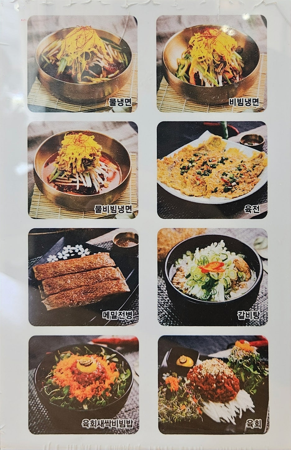 메인은 역시 진주냉면. 물냉면과 비빔, 물비빔이 있다. 지난번에 물비빔을 한번 도전해 보았지만, 그다지였기에 오늘은 물냉면 2개로 주문. 거기에 빠질 수 없는 육전 1개.