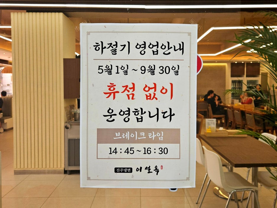 냉면의 계절이 도래했다는 것을 이 문구로도 몸에 와닿는다.