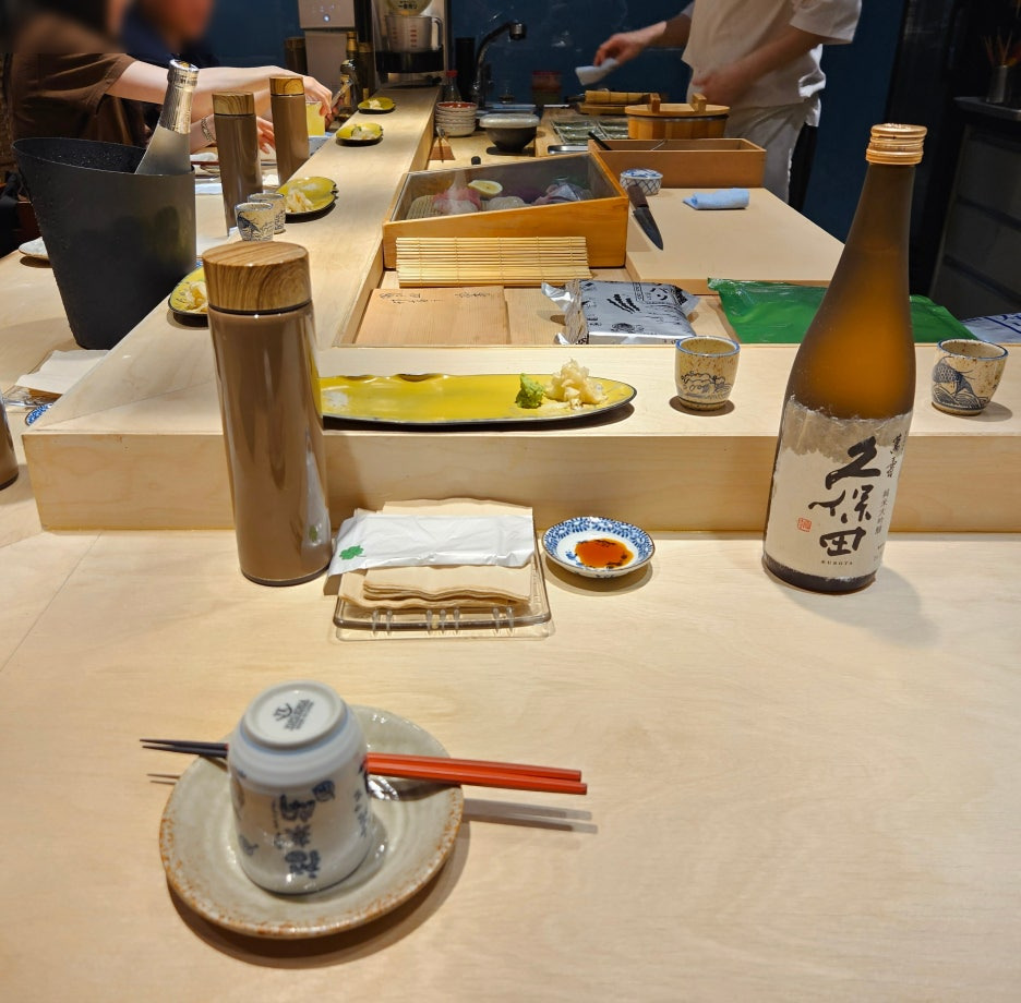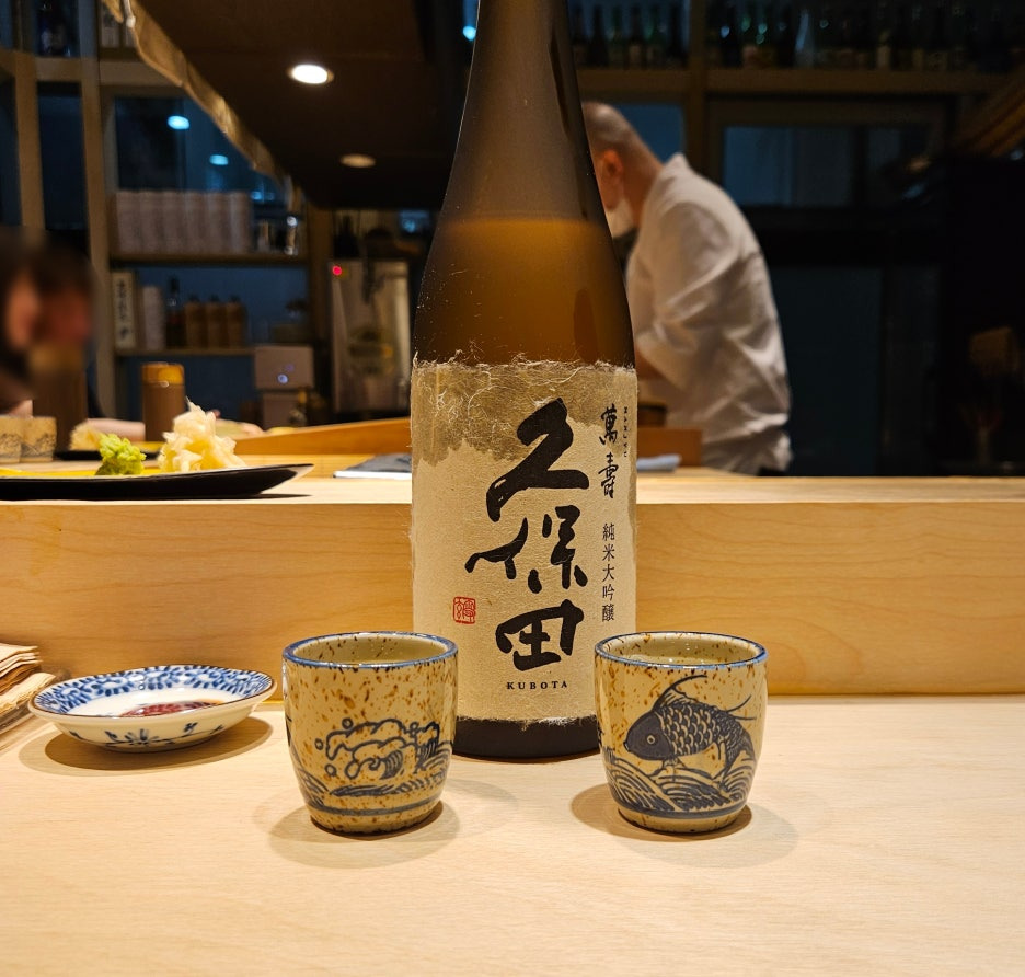 전화로 문의해서 콜키지 비용을 확인한 후, 쿠보타 만쥬 한 병을 들고 갔다. 원래는 얼음 박스도 제공해 주시는데, 우리는 상온 상태로 먹겠다고 말씀드려서 그냥 이렇게 먹는 걸로.
