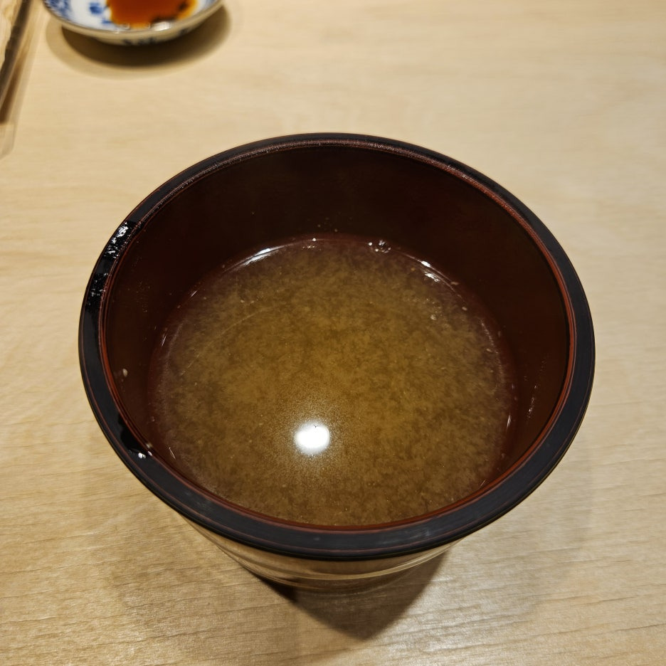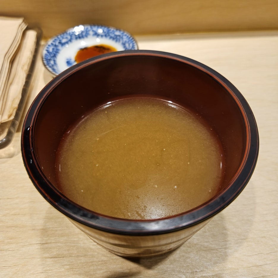 잠깐 쉬어가는 미소 지루. 이거 이거 향이 아주 좋다. 랍스터를 넣었나 싶을 정도. 새우 대가리와 된장을 엄청 고아서 만든 미소 지루라고. 미소 지루 안에 다른 재료는 없었다. 스시현은 저렴한 방식으로 최고의 맛을 내는 법을 알고 있는 스시야.