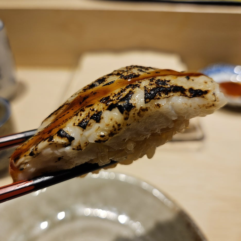 살짝 아부리한 껍질이 매력적이다. 각각의 네타마다 하나씩 포인트를 준 것이 인상적이다.