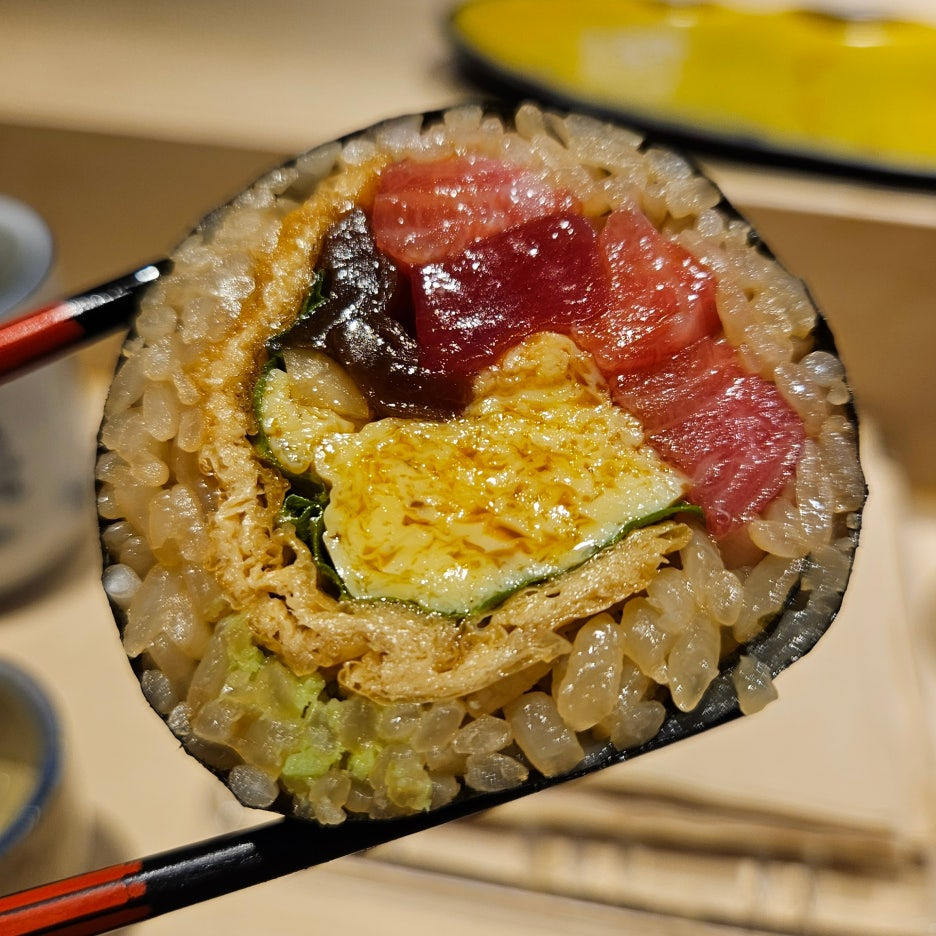 두 가지 마구로와 달달한 유부가 들어가 있던 후토마키. 다시마키와 시소의 향도 좋았다.