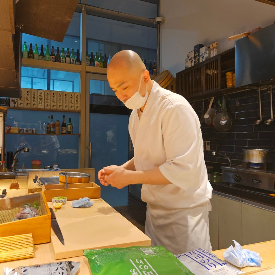 청어와 같은 등 푸른 생선을 히카리 모노라고 한다며 설명을 해주시던 셰프님께서 갑자기 자학 개그를 시전하셨다. '히카리 모노'는 '빛나는 것'이라고 말씀하시더니, "네, 제가 히카리 모노입니다." 셰프님의 사진을 보면 이해가 되시리라. 즐거운 분위기가 더 좋아지고 화기애애.