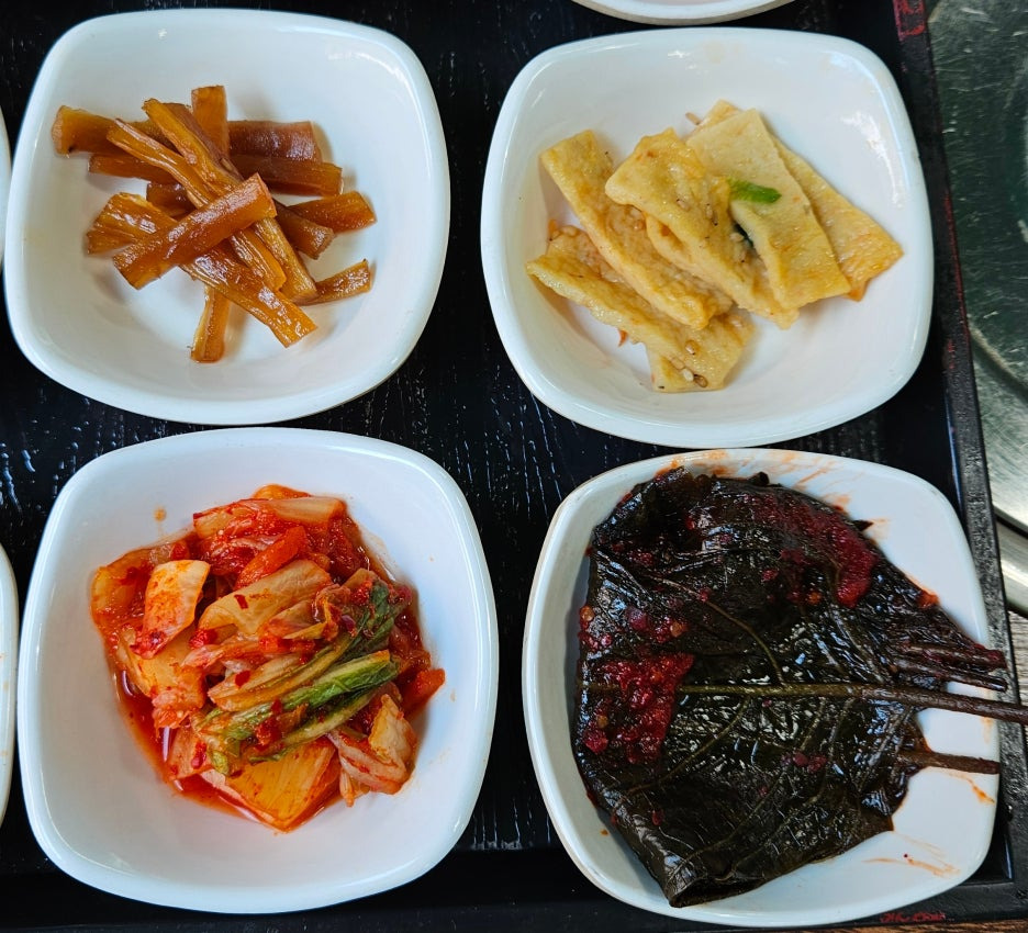 4조 - 장아찌, 어묵볶음, 김치, 깻잎 무침.