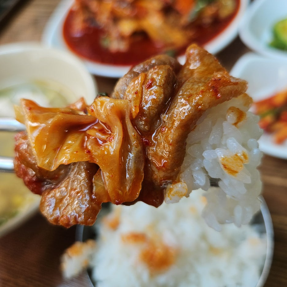 역시 이런 느낌의 백반 반찬은 밥과 함께 먹어야 제맛이다. 볶음 양념이 전혀 맵지 않고, 달달한 느낌이라 맵찔이 입맛의 나에게는 좋았다. 밥과 함께하니 더욱더.