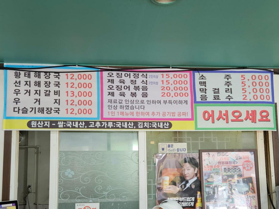 메뉴는 이러하다. 포천이라는 지역을 생각한다면 가격이 저렴하지는 않다. 해장국이 1만 2천 원이니, 아마도 반찬 가격이 다 포함이 되어 있는 것이 아닐까 싶은 생각이 든다.