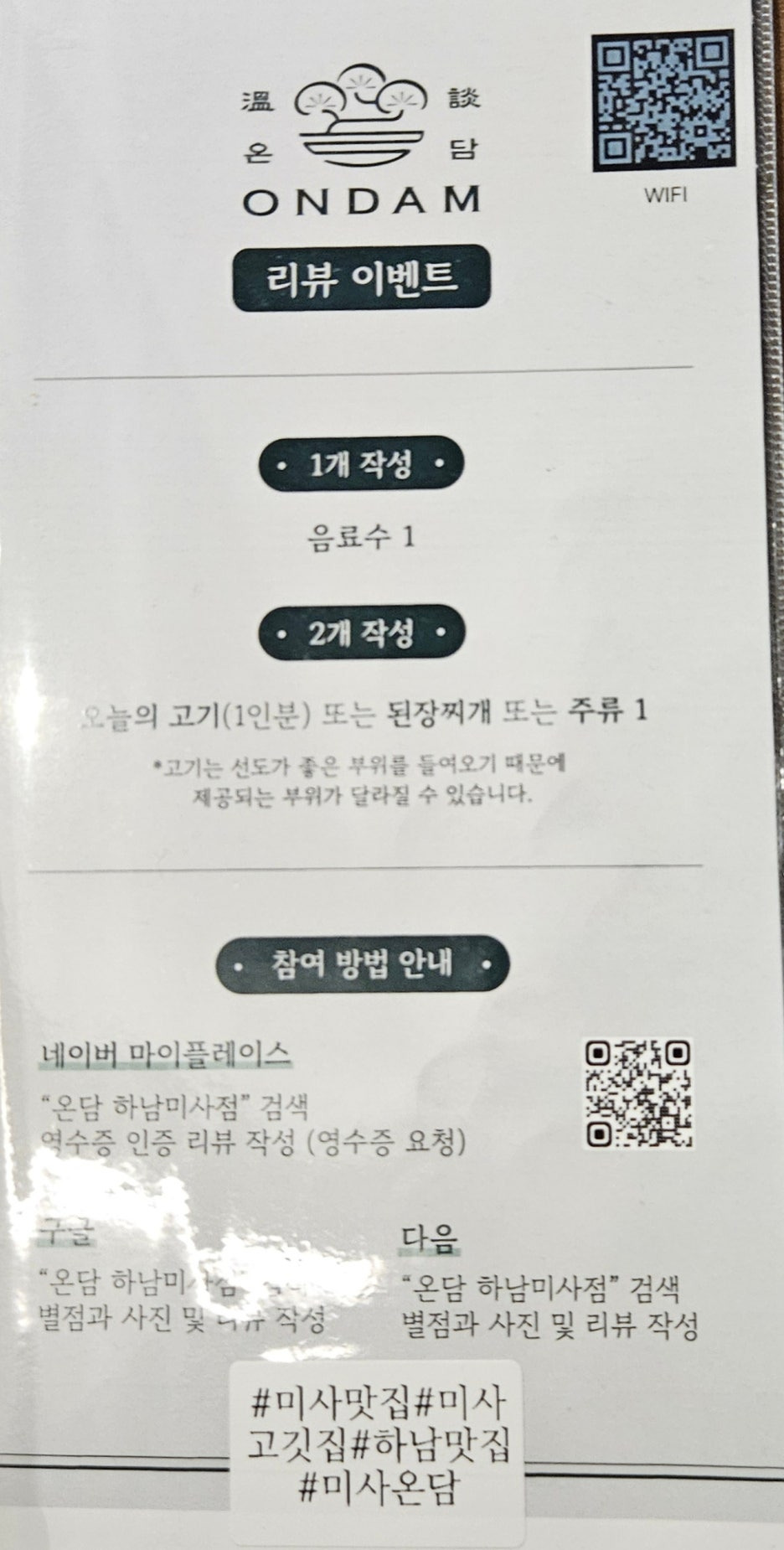 리뷰 이벤트도 진행 중이라, 무료로 고기 1인분을 더 먹을 수도 있다. 또한, 네이버 예약을 하고 가는 경우, 테이블 당 레드와인 1잔을 서비스로 제공해 준다.