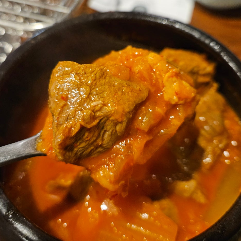 기본으로 나오는 김치 짜글이. 맵지 않고 달달한 걸쭉한 김치찌개. 안에는 고기도 상당히 많이 들어 있어 놀랬다. 맛도 좋다.