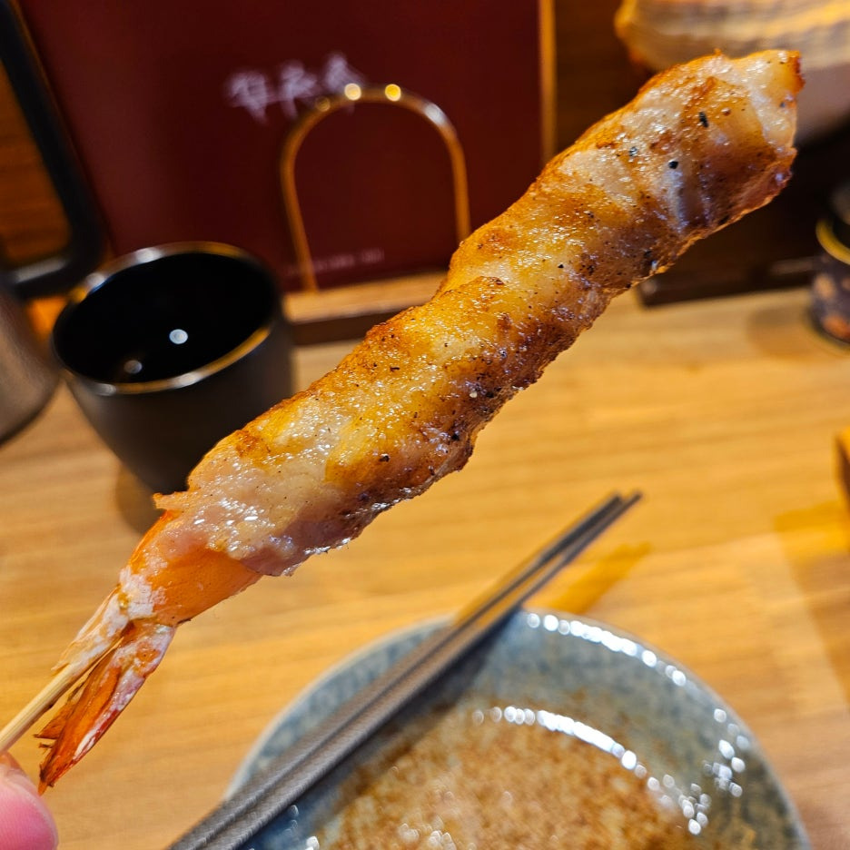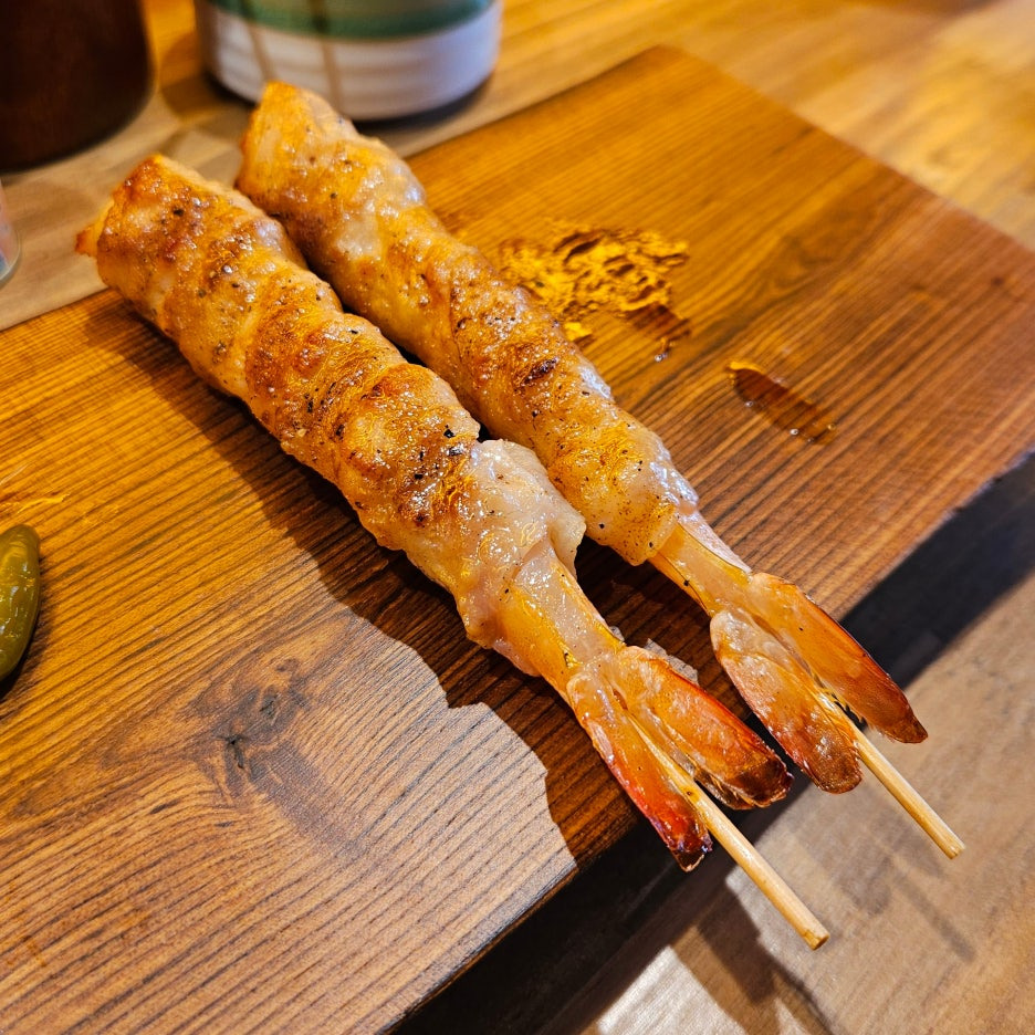 맛있는 새우에, 맛있는 대패 삼겹살을 말아 구운 녀석. 맛이 없기 힘들 듯.