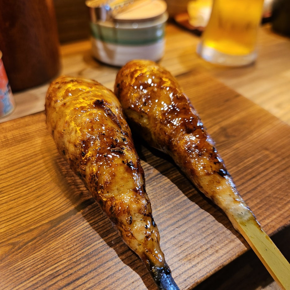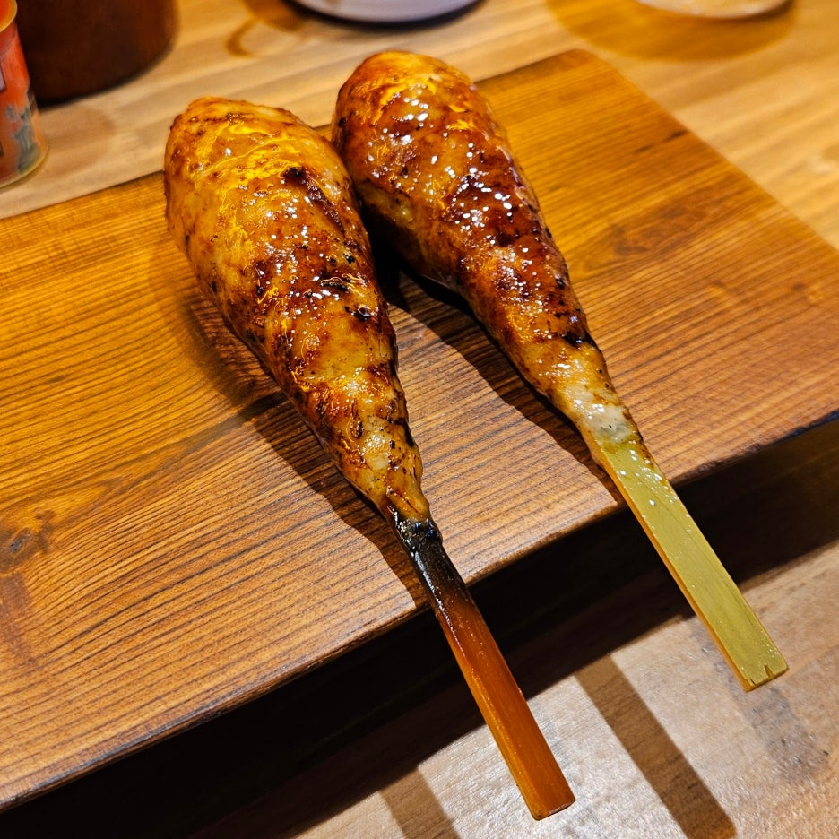 왼쪽이 세세리, 오른쪽이 카와. 개인적으로는 야키토리 중에 츠쿠네와 카와(닭 껍질)을 가장 좋아한다. 세세리는 부드러운 목살을 먹을 수 있어서 선호하는 부위. 사실 스나즈리(닭똥집)을 주문했으나 준비가 안 되어있다고 해서, 세세리로 변경했다.