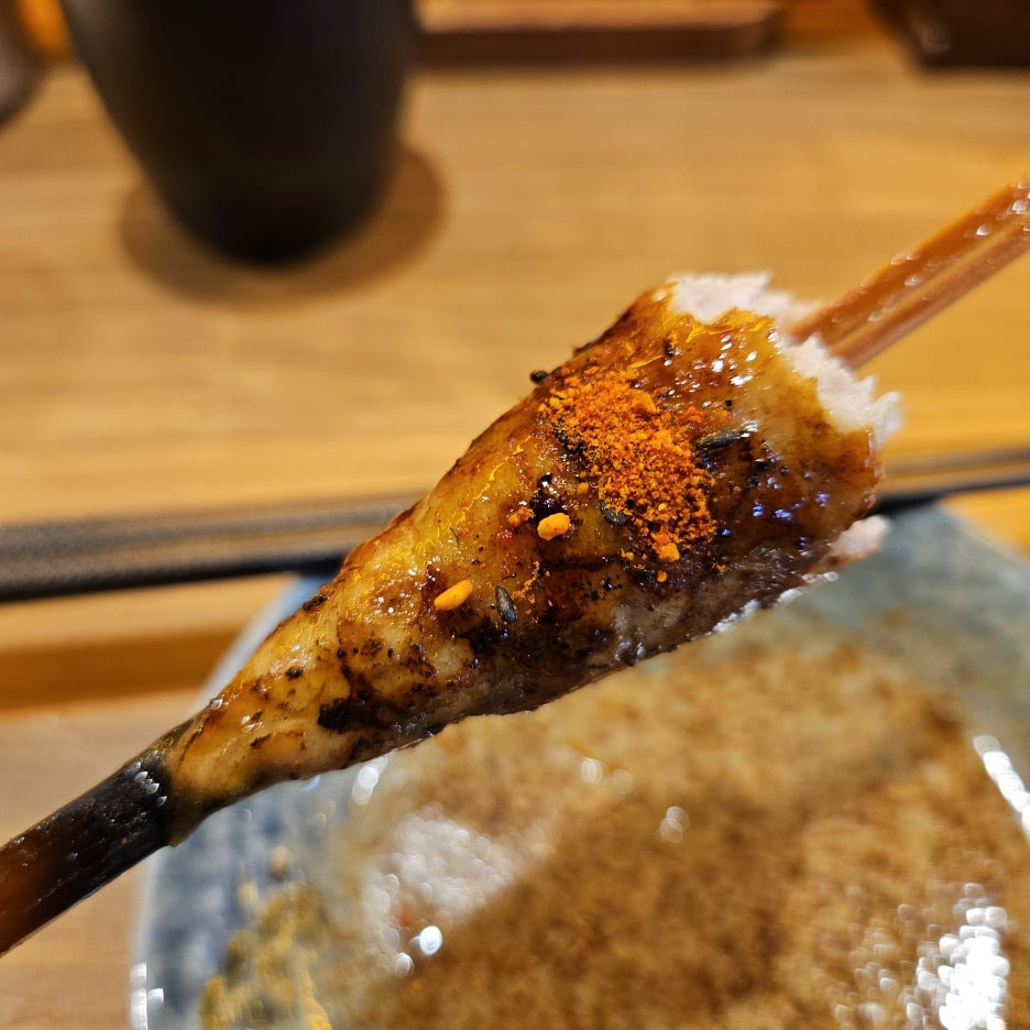 껍질 부분을 아주 잘 구워서 후라이드 처럼 바삭함이 있고, 속살은 아주 부드럽고 쥬시. 훌륭한 맛이긴 하지만, 야키토리라는 느낌에서는 조금 벗어난 것이 아닐까 싶기도.