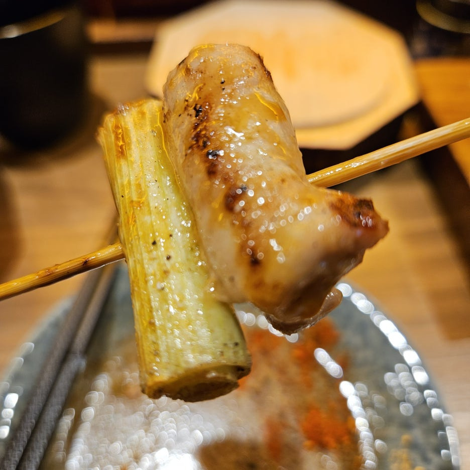 야키토리의 근본 메뉴인 네기마. 닭 다리 살이 아주 부드럽고, 잘 구워진 파와 아주 잘 어울린다. 특히 파는 단맛이 극락이다. 대단하다.