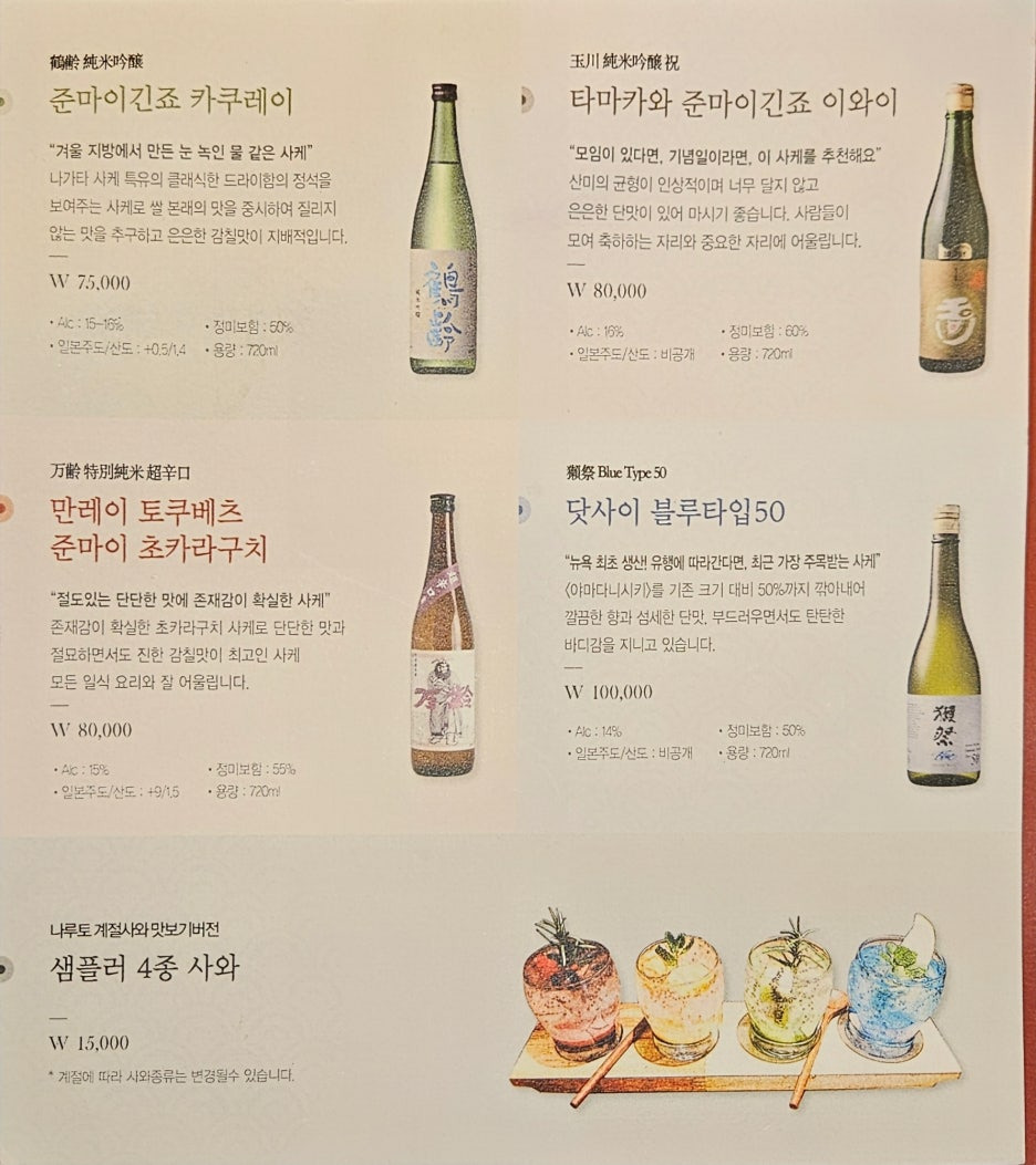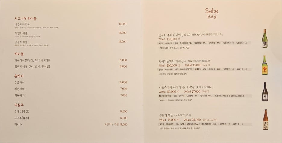 야키토리 집이니 물론 술을 마셔야지. 오늘 주문한 주류들만 먼저 평가를 해보고자 한다. 잠깐 언급했듯이 한국 생맥주도 있고, 일반 소주도 있어 부담 없이 술을 마실 수 있는 곳이라 아주 마음에 든다.