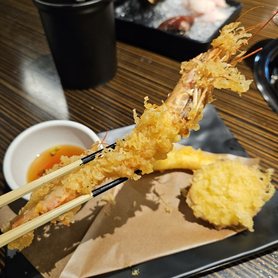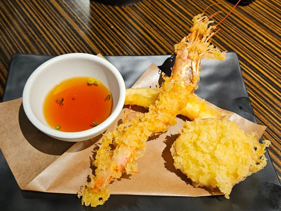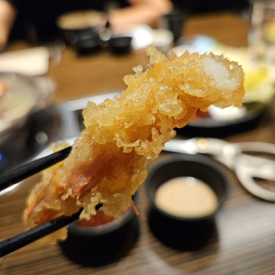다음 코스 요리는 튀김. 새우, 고구마, 갑오징어. 2명이었는데, 1개씩 밖에 나오지 않았다. 절대 이해가 되지 않는 서빙 방식. 기본적으로 튀김의 모양새는 아주 좋다. 바삭해 보이는 튀김옷은 훌륭하다.