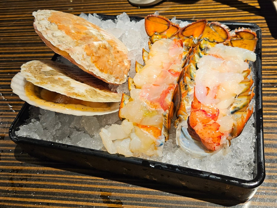 가장 관심이 갔던 랍스터 꼬리. 신선해 보이지만, 회로 먹는 것은 자제를 하는 것이 좋을 듯. 살짝이라도 육수에 데쳐서 먹어야 위생상 안전할 듯하다.