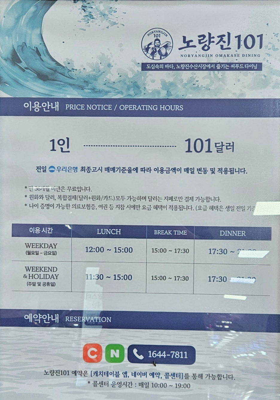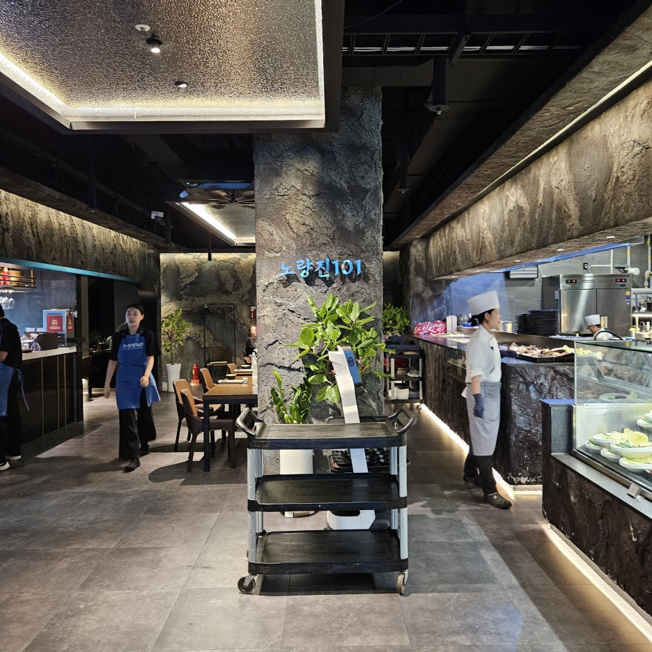 요즘 또 핫하다는 스시101과 같은 곳에 위치하고 있는 노량101. 스시101은 1시간 동안 회전스시를 무제한으로 먹을 수 있는 곳으로 5만8천으로 저렴해서 사람들이 많이 찾는듯하다.