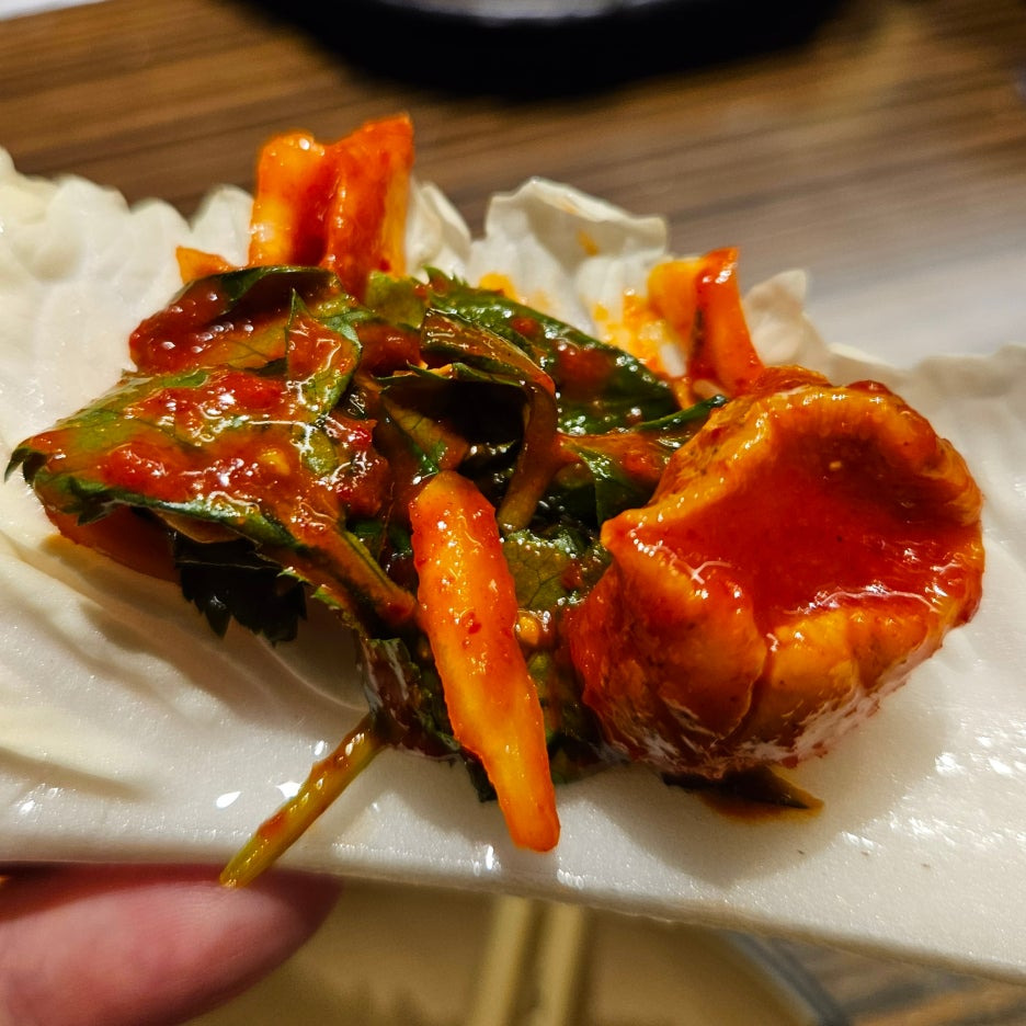 나중에 샤브샤브를 먹을 때 큰 위력을 발휘한 보쌈김치. 질릴 정도로 샤브샤브에 해산물들을 가득 담아 먹다 보니 살짝 입안이 비릿해지는데, 그 느낌을 상쾌하게 바꿔는 마술의 음식.