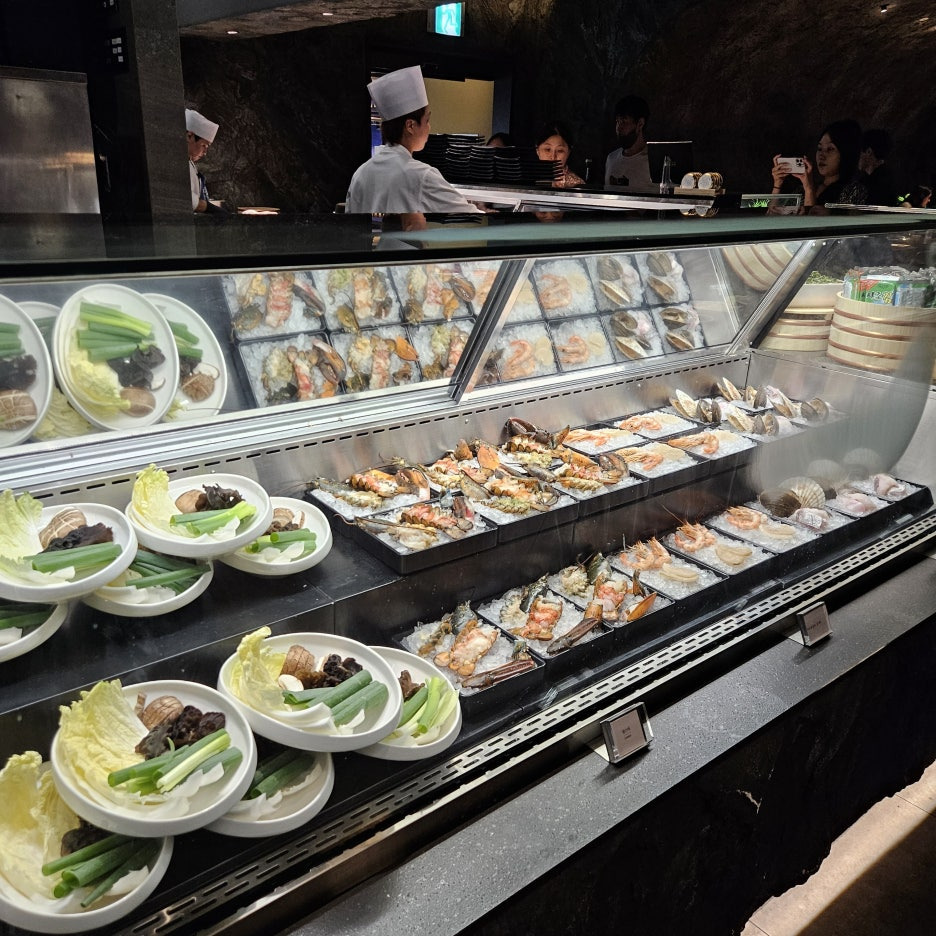 샤브샤브 재료들은 미리 손질해서 전시가 되어 있었다. 하지만, 이걸 직접 가져와서 먹는 것은 아니고, 직원분께서 테이블로 서빙을 해주신다.