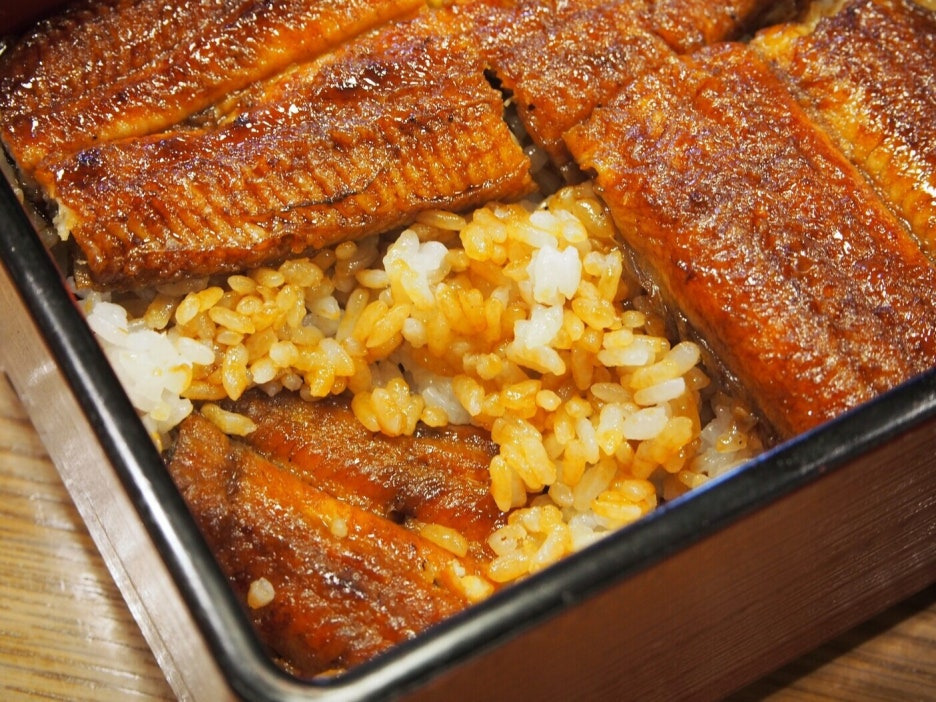 관동식으로 대나무 꼬치에 껴서 10분을 구운 후, 찜기에 10분 정도 쪄서, 속이 부드러워지며, 남은 기름기도 빠져서 담백한 맛으로 만들어진 우나쥬. 잘 보면 대나무 꼬치에 꿰어진 장어를 볼 수 있다. 관동식 요리법으로 구워진 장어는 너무 부드러워지기 때문에 철꼬치를 사용하면 쉽게 빠져버려 대나무 꼬치를 사용한다고 한다.