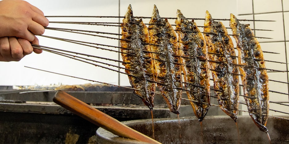 - 장어의 배 쪽부터 갈로 가름, 찌지 않음, 쇠꼬챙이 사용, 머리가 붙어 있는 상태에서 굽고 나중에 자른다.