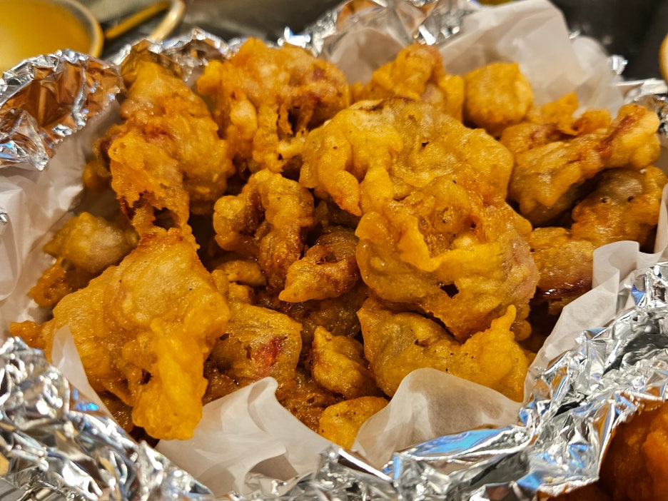 닭똥집의 튀김도 마찬가지. 똥집 튀김의 튀김옷이 특히나 재료와 따로 노는 느낌. 어쩐지 뭔가 튀김옷과 닭똥집을 따로따로 먹는 느낌이라 어울리지 않는다. 하지만, 닭고기와 마찬가지로 똥집은 아주 신선하고 잡내 하나도 없이 쫄깃쫄깃 맛있다.