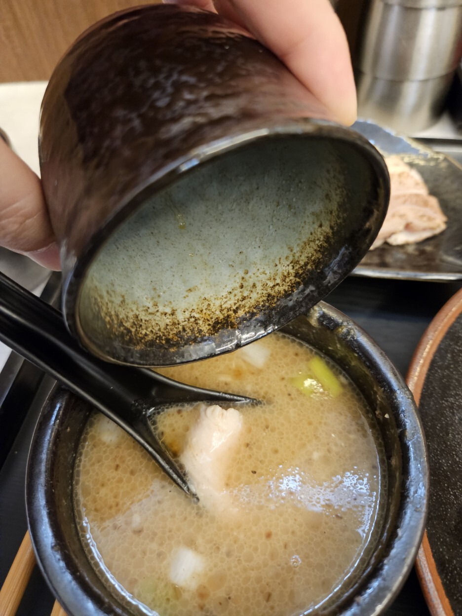 이제 하이라이트가 남았다. 와리 스프를 받아서 츠케지루에 넣어 먹는 것이다.