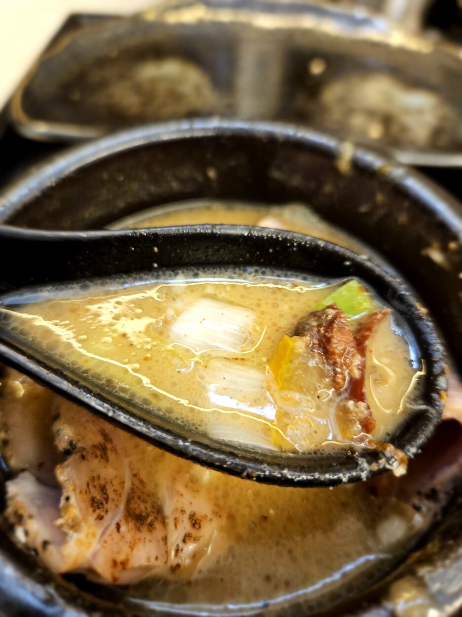 와리 스프로 돼지 육수 백탕을 시켰다. 이 친구는 좀 많이 느끼한 편이다. 또 다시마 식초가 필요해진다. 청탕은 해산물 베이스로 좀 더 깔끔하게 먹을 수 있다.