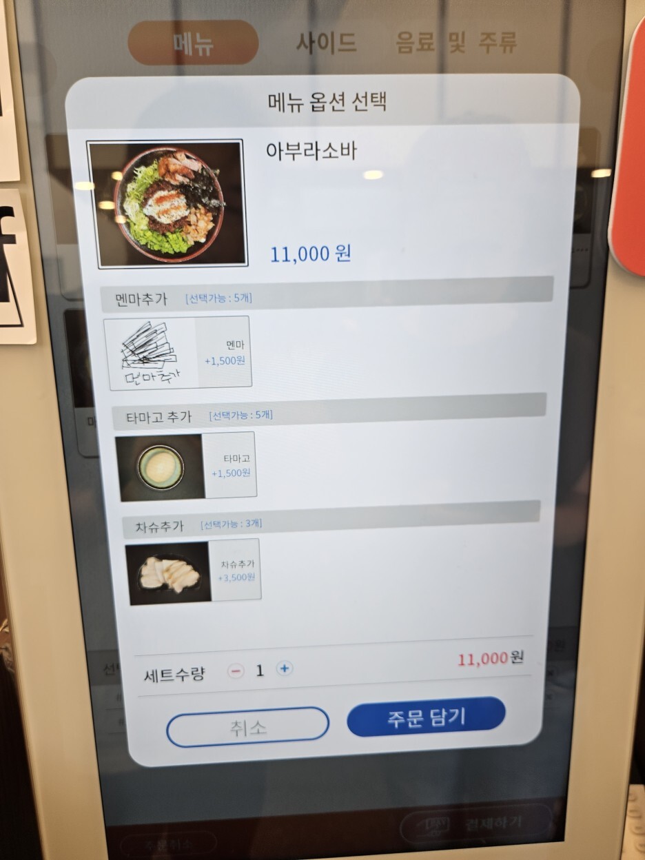 아부라소바 11,000원 & 차슈추가 3,500원