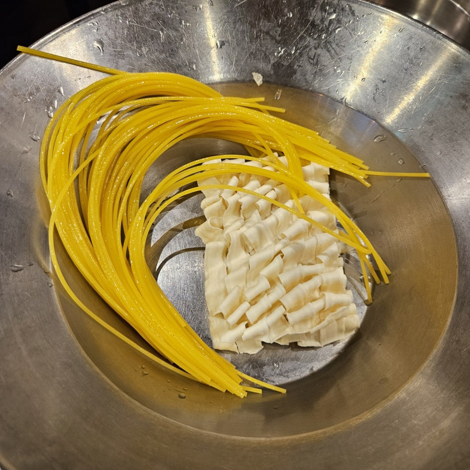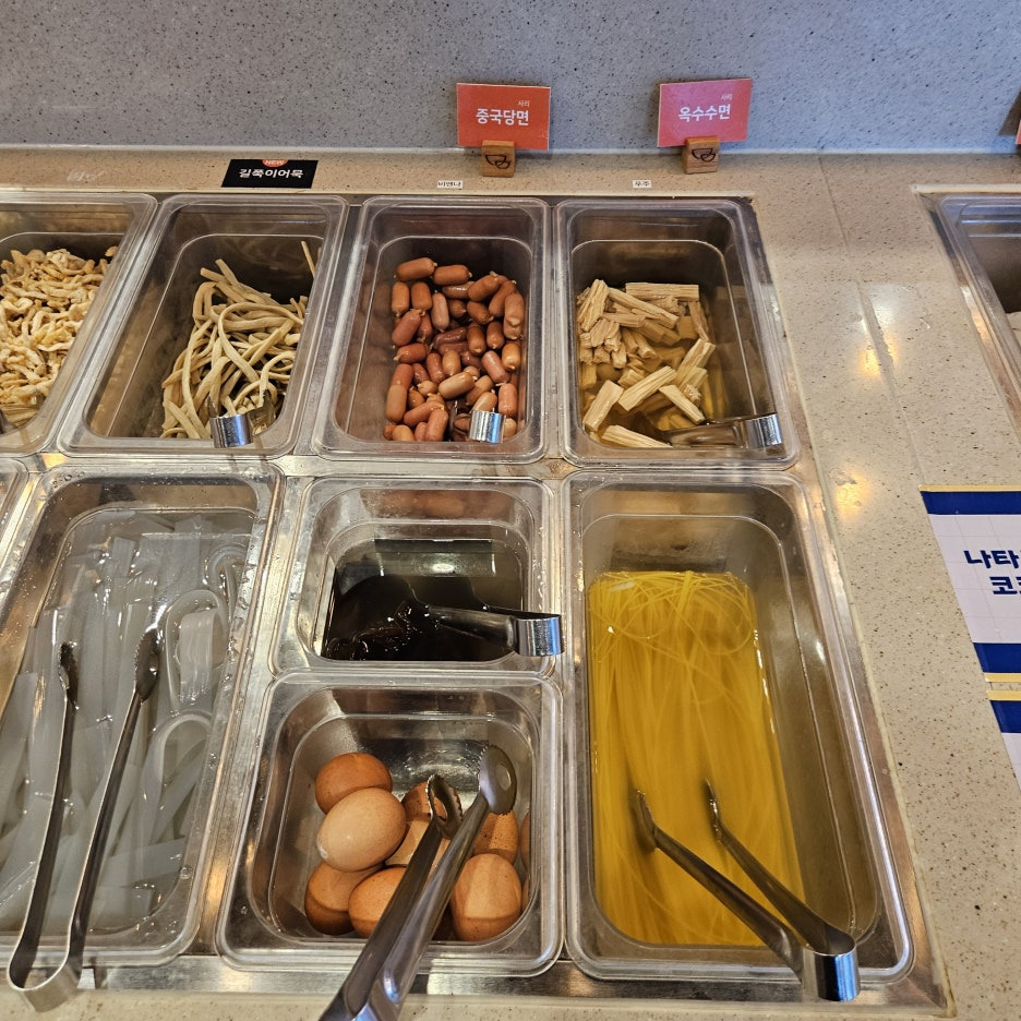 모든 재료 중 가장 맛있었고, 두번 가져다 먹은 옥수수면과 도삭면.
