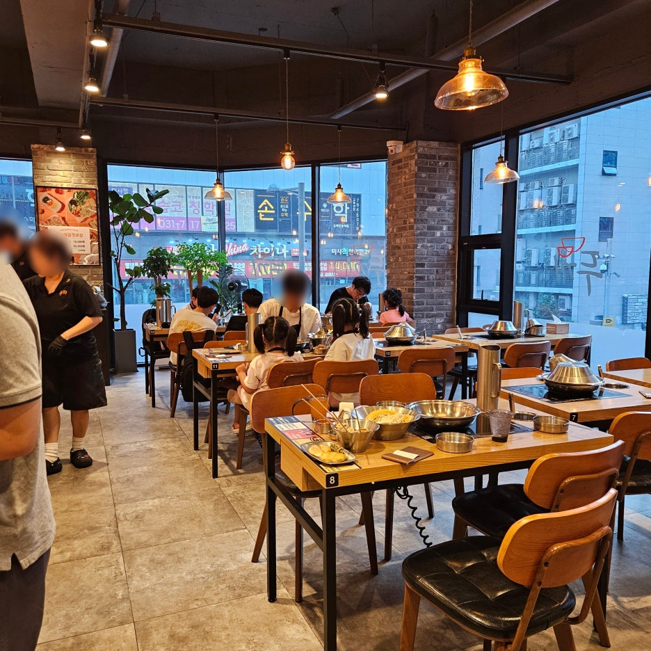 그래도 저렴한 가격에 배부르게 먹을 수 있는 곳이라, 부모님과 함께 온 어린 친구들이 역시 많았다. 데이트하는 고딩 친구들도 많아보이고. 그러다 보니, 6시쯤 맞춰 갔더니, 대기를 해야 하는 사태가... 내부는 깔금했다. 하지만 좌석은 그리 많지 않던.