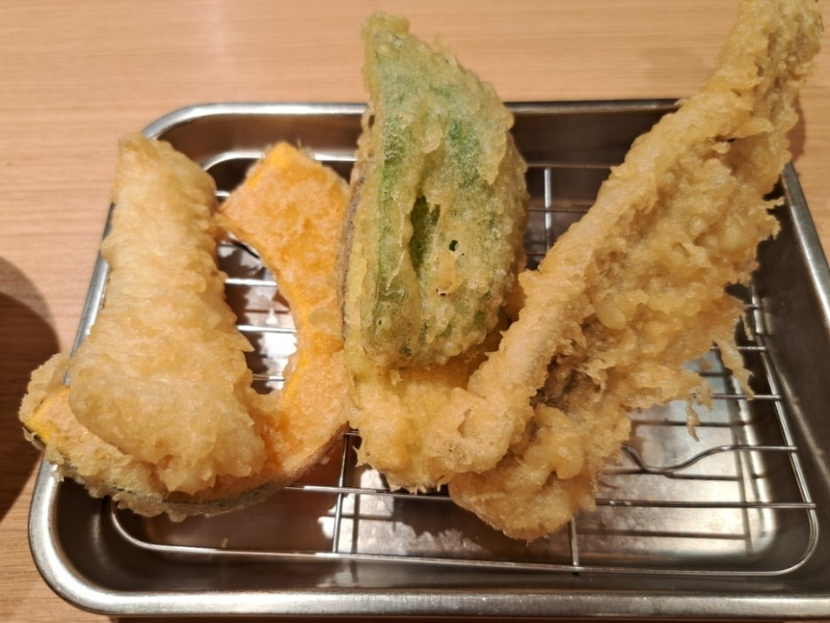 - 야채 튀김(野菜): 계철에 따라 가지, 피망, 버섯, 고구마, 연근 등 다양한 야채 튀김을 단품으로 추가할 수 있다.