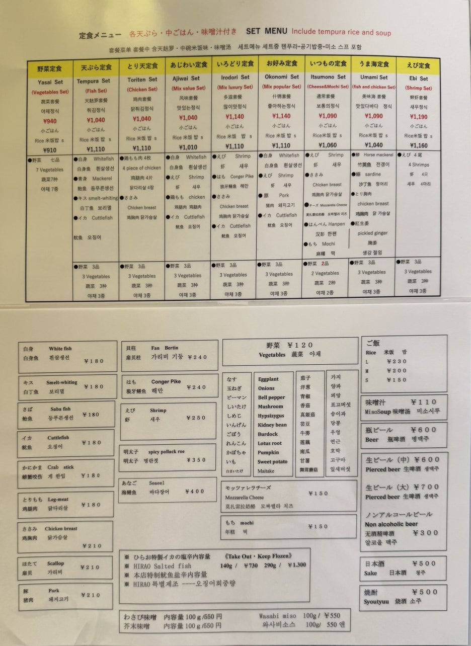 히라오는 워낙 유명한 곳이라 다들 알고 계실듯하다. 후쿠오카에서 튀김 정식을 먹겠다고 생각한다면, 바로 나오는 이름이 바로 히라오.