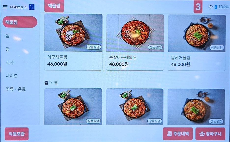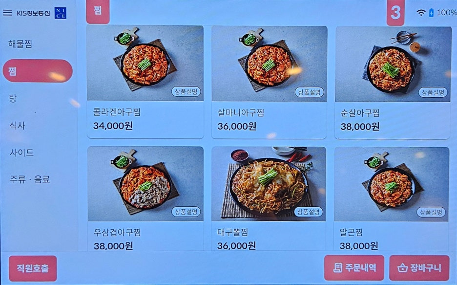 해물찜들은 소자 기준으로 46,000원~48,000원 정도의 가격. 아구찜, 볼찜, 알곤찜은 소자 기준 34,000원~38,000원 정도. 중자는 1만 원, 대자는 2만 원 추가되는 형태였다.