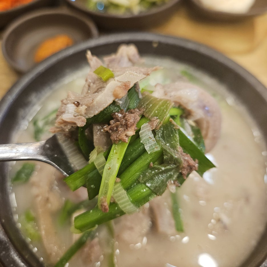 고기는 머릿고기 위주로 들어가 있는 모습이다. 이게 수육국밥과 다른 점이 아닐까 싶다.