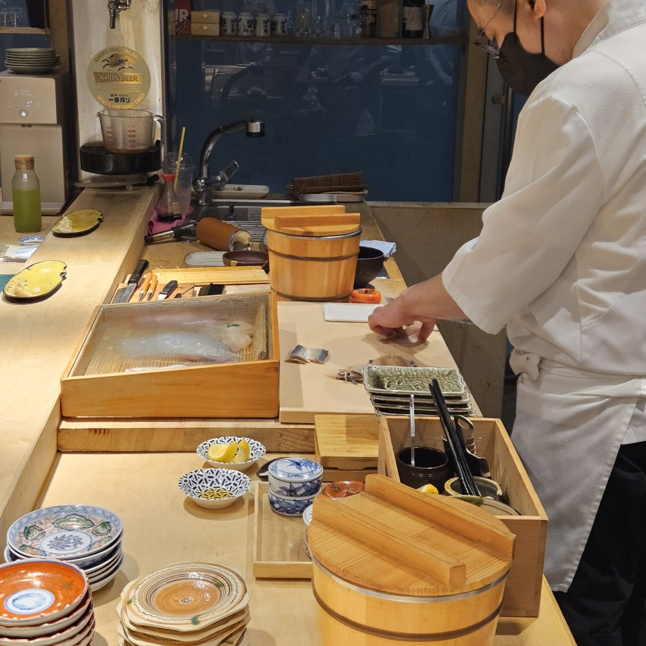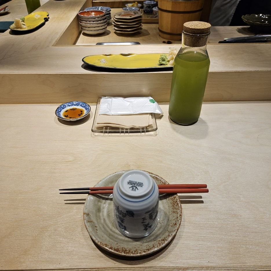 왼쪽으로 4좌석, 앞쪽으로 3좌석이 있어 7명을 한 번에 받을 수 있는 형태다. 스시야는 일반적으로 두명이서 방문하는 경향이 많다보니, 언제나 한 자리는 꼭 비어 있기 마련이다. 혼자서 스시현을 방문하시고자 하시는 분들은 수월하게 예약이 가능한 것 같았다.
