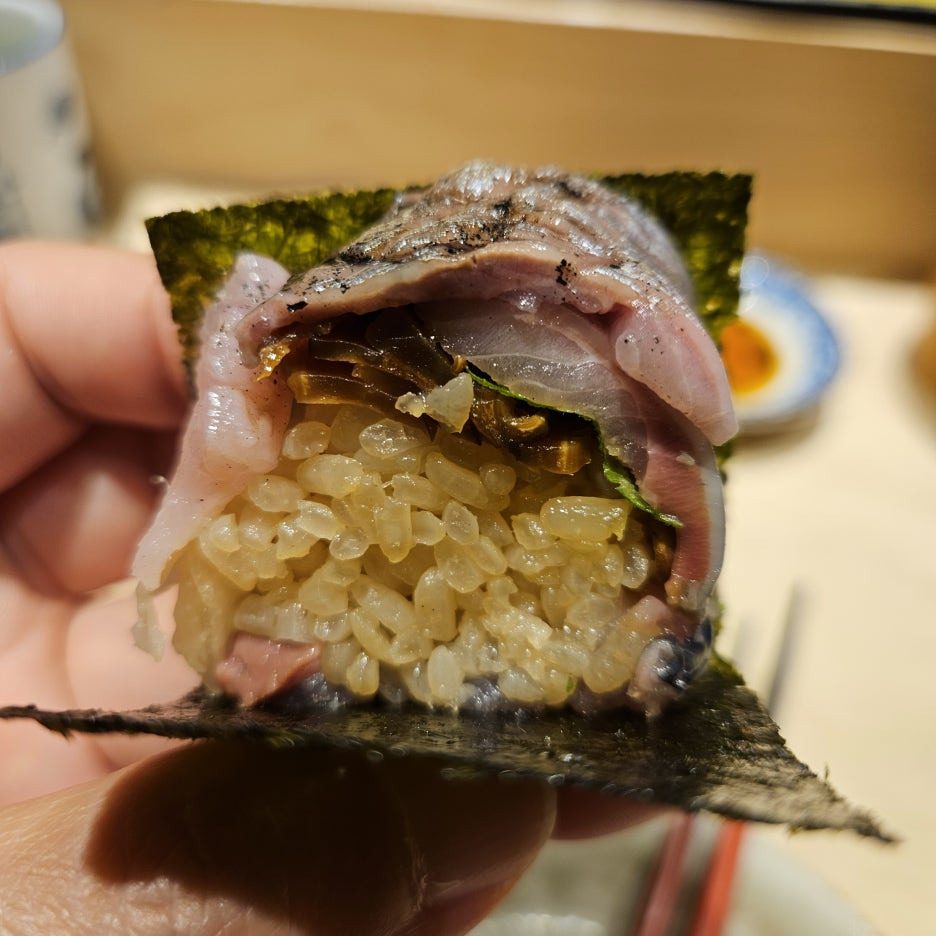 이제 물이 한껏 오른 청어도 맛있고, 달달한 김으로 바꿔서 훈제의 맛이 더 산다. 너무나 훌륭하다. 오늘뿐만 아니라 지금까지 스시현에서 먹은것 중 가장 맛있었다.