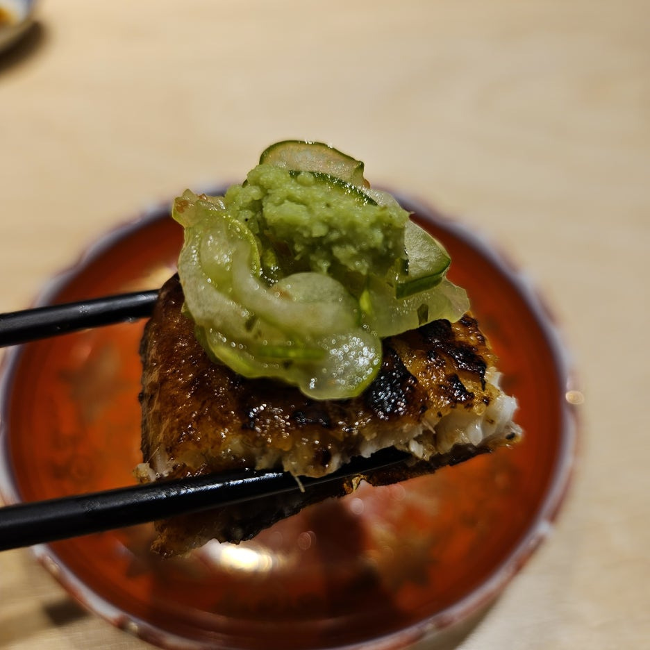 옆집인 우나기현에서 공수해오는 민물 장어 구이. 오랜만에 시그니처라 생각하는 오이절임과 함께 나왔다.