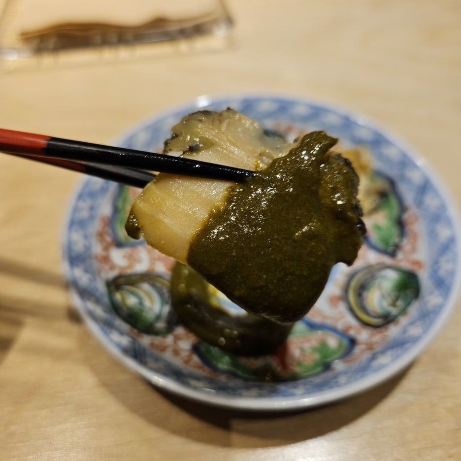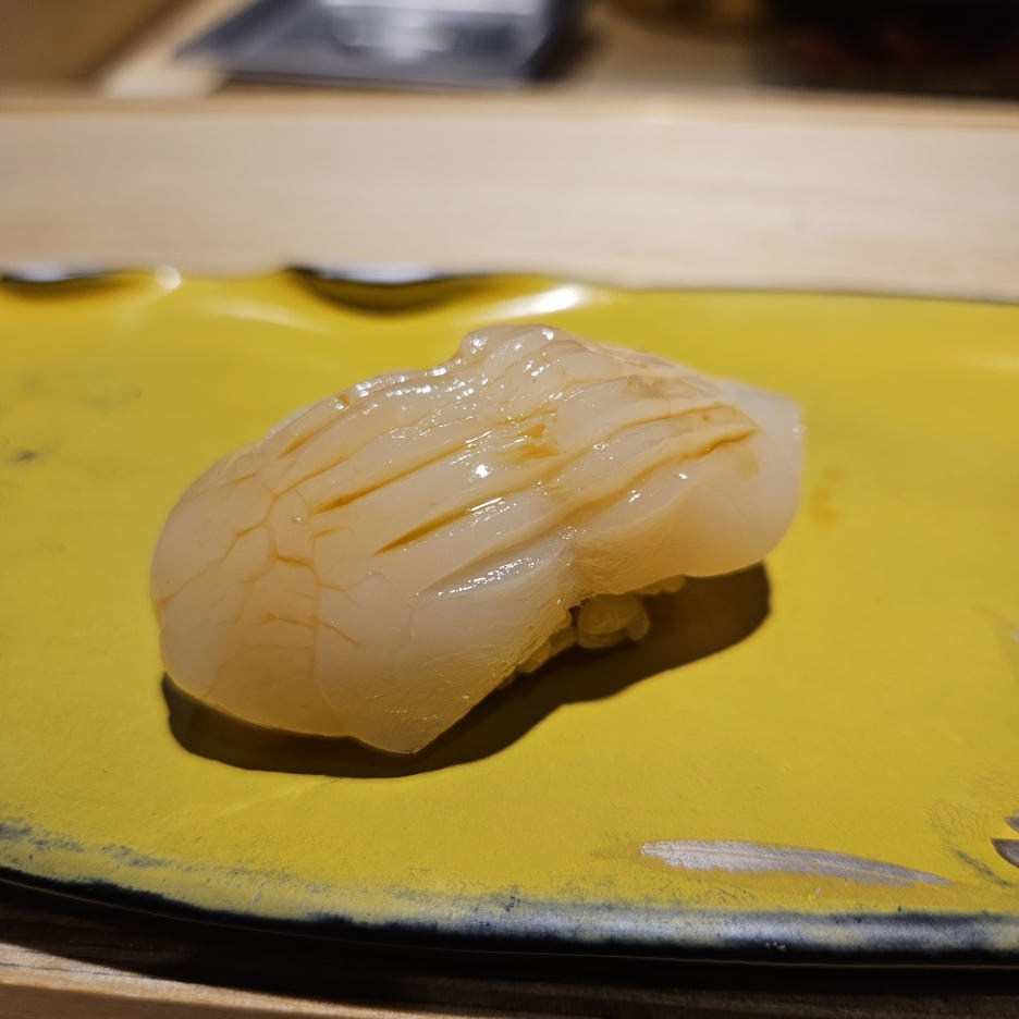 무늬 오징어, 갑오징어도 아닌 일반 오징어였지만 부드러운 오징어가 훌륭했고, 시소의 향과 함께 톡톡 터지는 식감의 짭잘한 명란이 아주 잘 어울린다. 스시현에서 접해본 츠마미 중, 최고 퀄리티의 요리였다.
