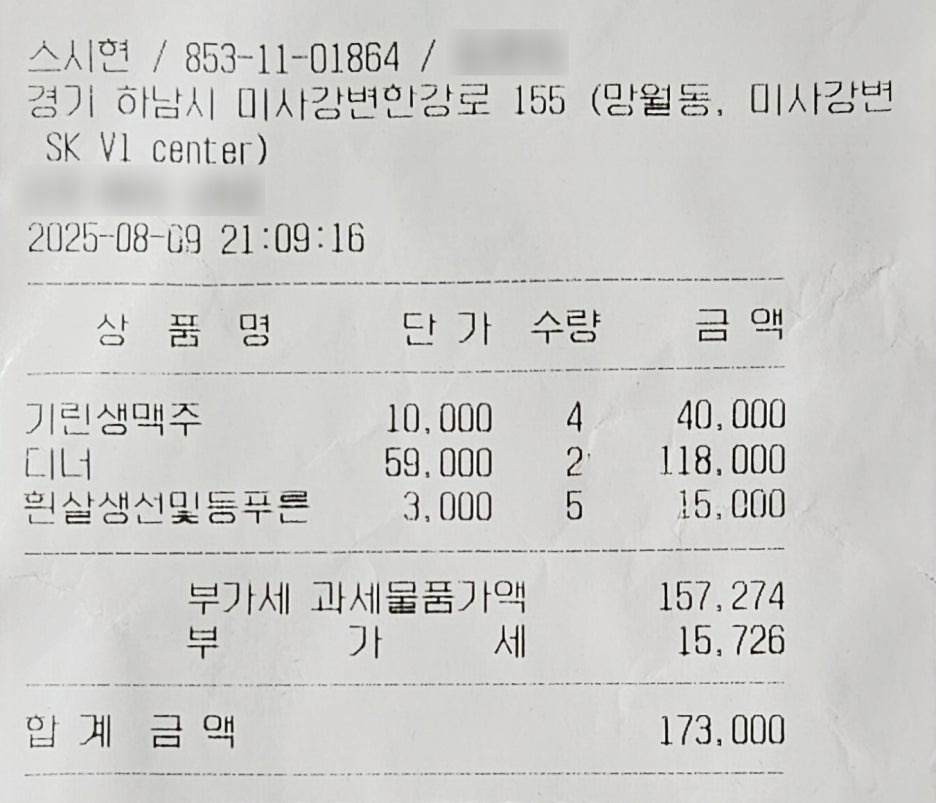 오늘도 이렇게 푸짐하고 맛있게 잘 먹고, 1인당 86,500원이 들었다. 오늘은 맥주를 무려 1인당 2개씩 먹었기에 가격이 꽤 나온 편이다. 맥주를 안먹었다면 66,500원. 이렇게 훌륭한 스시 디너 오마카세를 먹고 1인당 7만원이 안된다는 것이 말이 되는지 항상 의문이다.