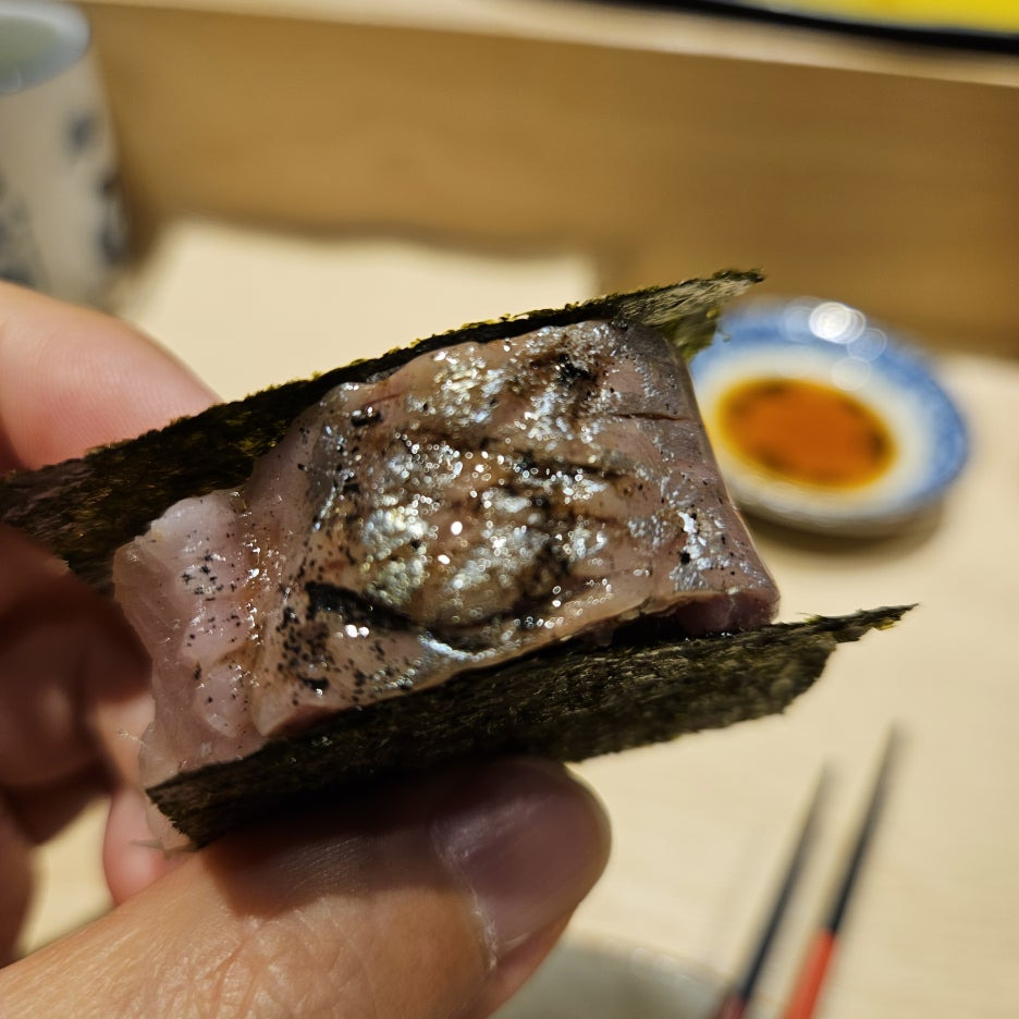 이곳의 전어의 맛은? 깜짝 놀랐다. 비린맛 없고 멸치향도 강하지 않게 은은하다. 스시 아리가, 스시 리카이의 강석영 셰프 이후로 가장 괜찮은 전어였다. 이 맛이라면 전어 초보자도 아주 맛있게 먹을 수 있는 맛이다.